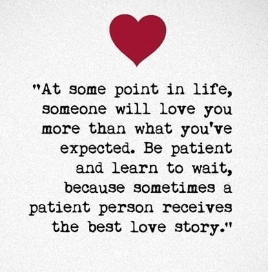 “At some point in life, someone will love you more than what you’ve expected. Be patient and learn to wait, because sometimes a patient person receives the best love story.”
