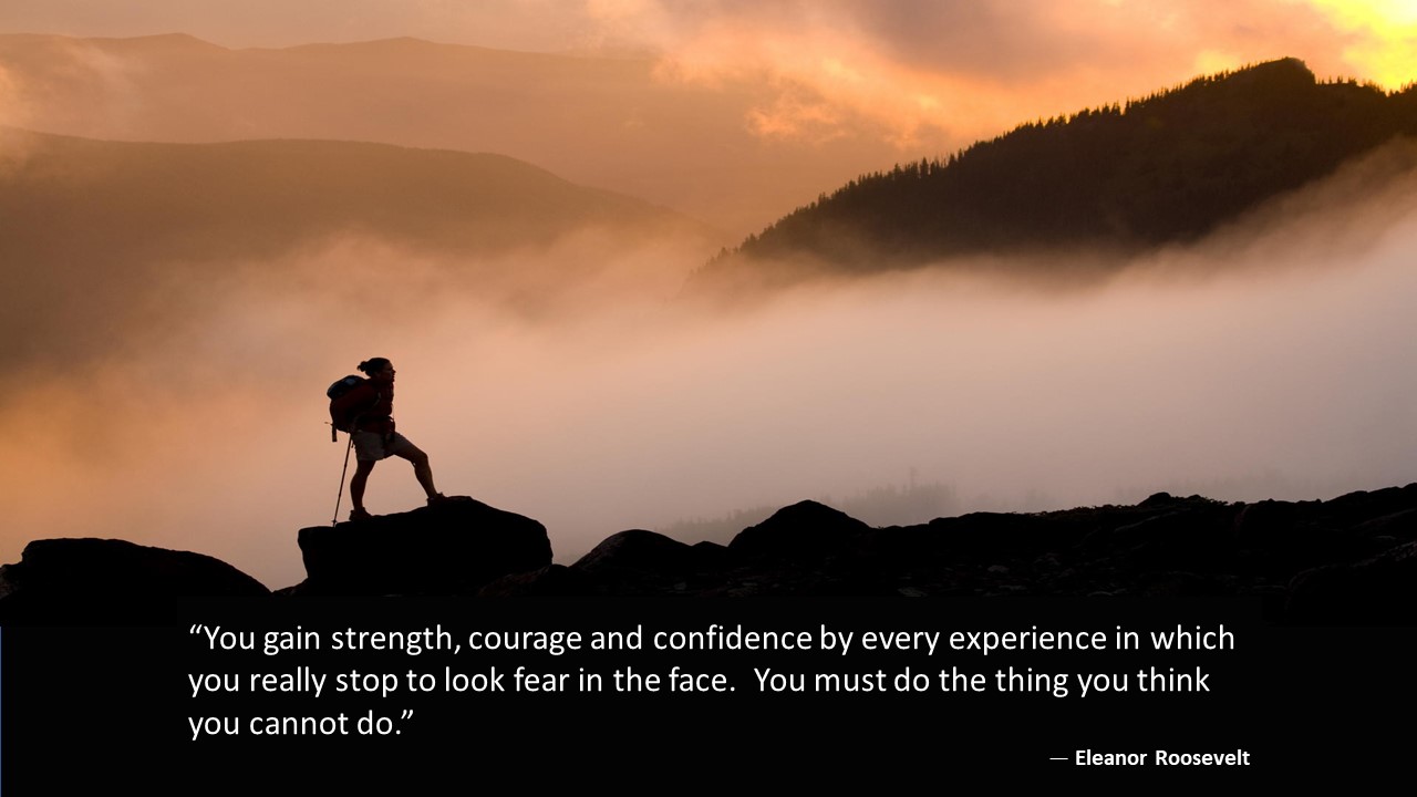 “You gain strength, courage and confidence by every experience in which you really stop to look fear in the face. You must do the thing you think you cannot do.”