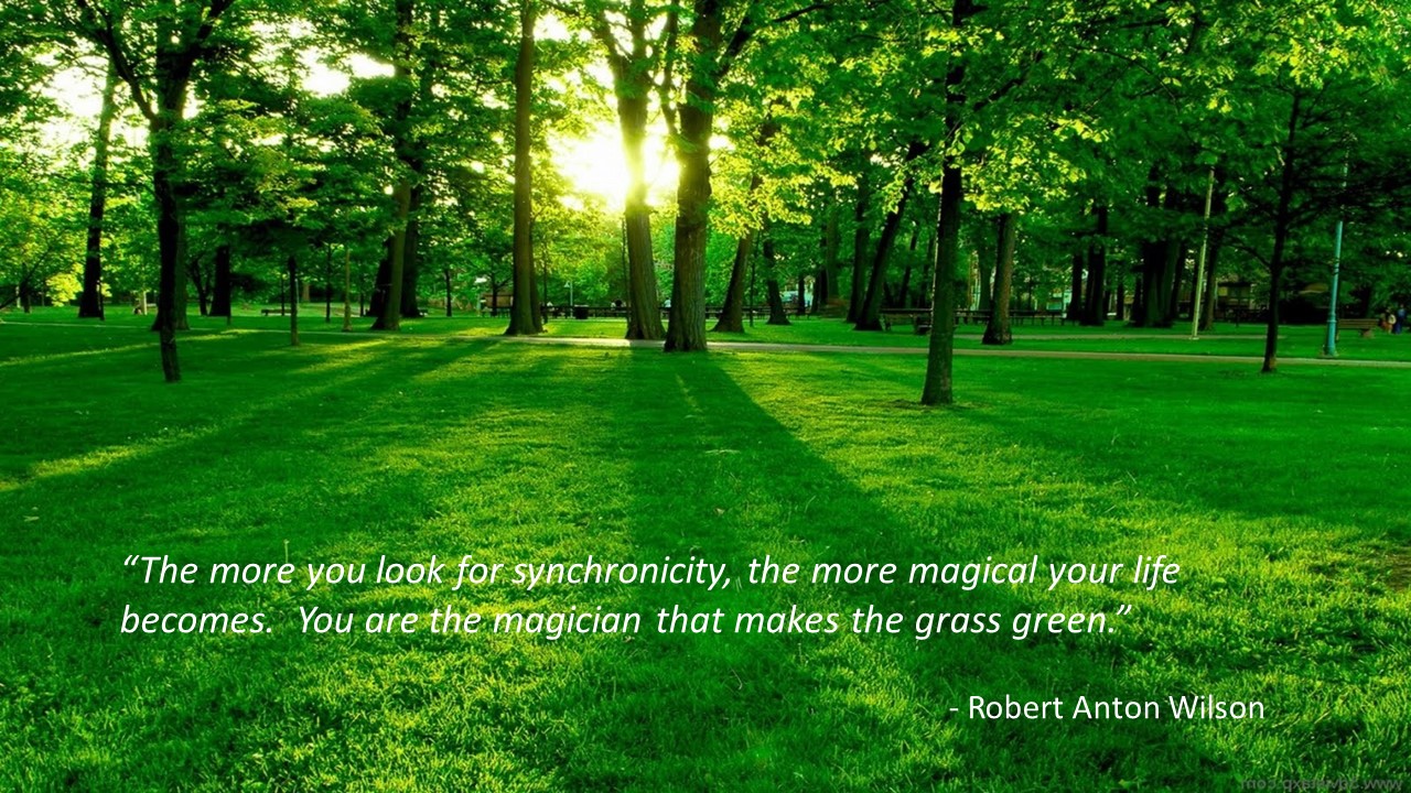 “The more you look for synchronicity, the more magical your life becomes. You are the magician that makes the grass green.”