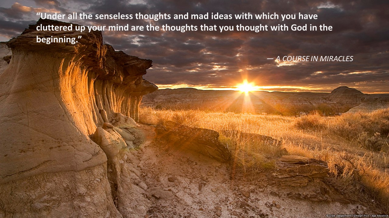 “Under all the senseless thoughts and mad ideas with which you have cluttered up your mind are the thoughts that you thought with God in the beginning.”